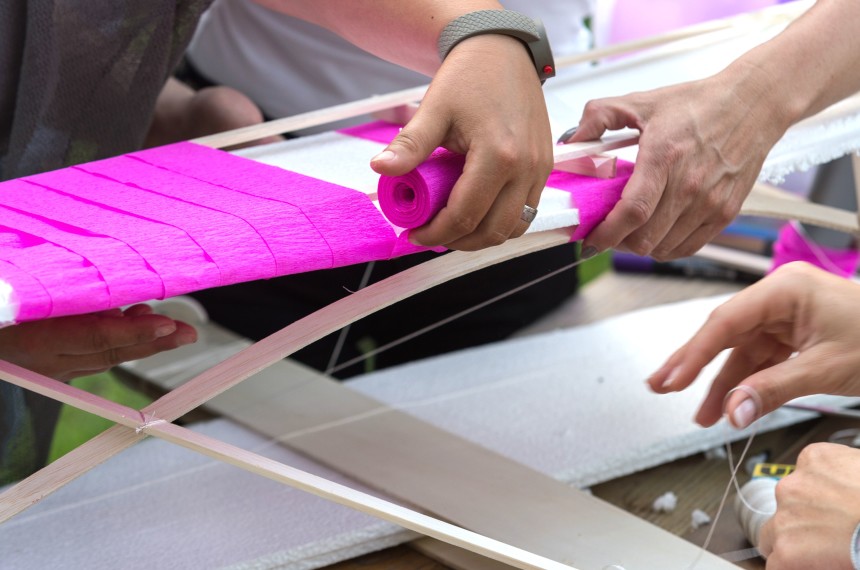 Jedes Team erhält eine Grundausstattung an ausgewählten Materialien und kann sich mit dem Luftfahrtquiz oder Papierfliegerweitwurf zusätzliches Material erwerben. Danach müssen noch gewisse Positionen und Zuständigkeiten vergeben werden. Wer wird Team-Captain, Materialspezialist, Technikspezialist, Statiker, Kreativer und Bauzeichner? Jetzt kann der Bau der unbemannten Flugobjekte starten.
