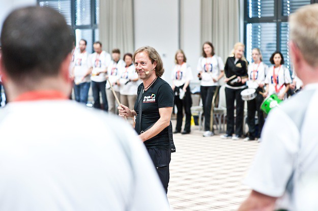 Die Samba-Trommel ist ein magisches Instrument. Es werden zusammen Rhythmen kreiert, die das ganze Team motivieren und anregen. Durch das Team-Drumming erzeugen sie ein einmaliges Gruppenerlebnis – ein Gefühl von Gemeinschaft. Gemeinsam in einen Takt zu kommen und die Stärke der Gruppe zu erfahren, ist die perfekte Basis um wahren Teamgeist zu erleben. Durch die Samba Rhythmen beim Team-Drumming entsteht ein wertvoller, synergiereicher Groove, der auch Menschen ohne musikalische Erfahrung mitreißt. Dieser brasilianische Groove und die Energie lässt das Team eine besondere und motivierende Teambuildings – Erfahrung erleben.