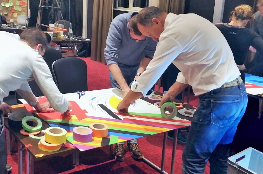 Arbeiten Sie z.B. gemeinsam an einem wertvollen Kunstwerk, was Ihre zukünftige Zusammenarbeit symbolisiert. Die erarbeiteten Commitments für das neue Miteinander könnten dann beispielsweise der Tape Art Gestaltung mittels Eddings sichtbar und mit Ihrer Unterschrift bekundet werden.