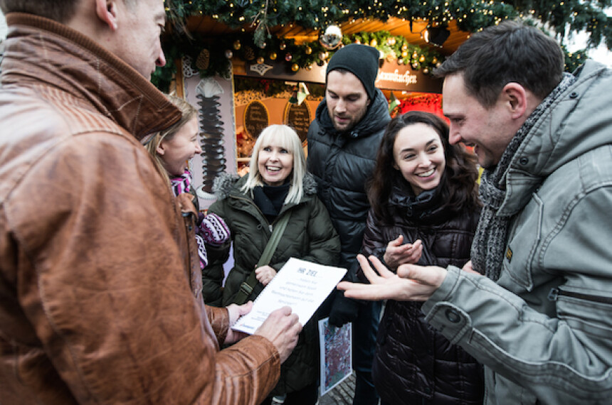 Erkunden Sie eine Stadt Ihrer Wahl zur Weihnachtszeit. Lernen Sie die versteckten Winkel und verborgenen Schätze der Stadt auf eine ganz besondere Art kennen. Ausgerüstet mit Roadbook, GPS Geräten und Stadtplan lösen Sie knifflige Rätsel rund um das Weihnachtsfest und suchen nach einem Teamgeheimnis, welches an unterschiedlichen Plätzen (z.B. Weihnachtsmärkten) versteckt ist und wie ein Puzzle zusammengesetzt wird. Dem Teamgeist auf der Spur – finden Sie den Schatz und genießen Sie die weihnachtliche Atmosphäre mit Glühwein und weihnachtlichen Düften.