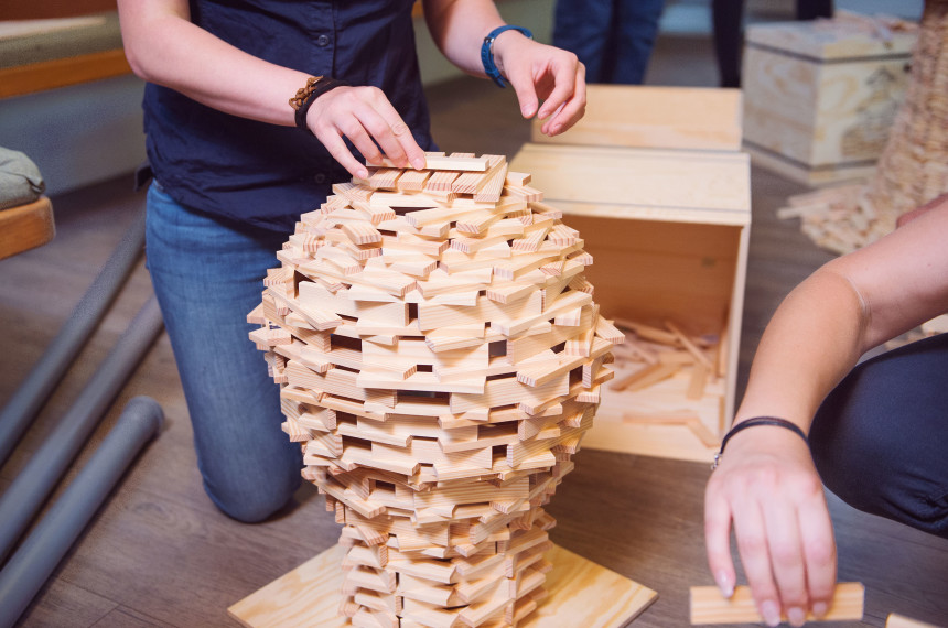 Unser Winter und Xmas KAPLA®-Wonderland Event startet mit einer kurzen Einweisung und dann läuft die Zeit für die Teams. Sie beginnen mit einem Brainstorming, um Ihre Teamideen kurz aufs Papier zu bringen. Nach der gemeinsamen Abstimmung im Team, welches Weihnachtsmotiv umgesetzt werden soll, geht es für die Teams daran die Holzsteine aufeinanderzusetzen, dies kann flach liegend, auf der Seite stehend oder hochkant erfolgen. Es wird bezaubernd sein, zu erleben, wie eine Weihnachtswelt entsteht.