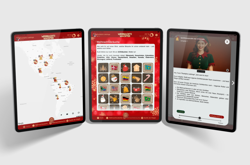 Mit iPads, einer Rätselbox und vielfältigen Challenges reisen die gemeinsam spielerisch um die Welt und entdecken faszinierende internationale Weihnachtsbräuche.